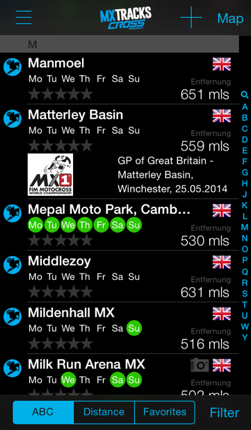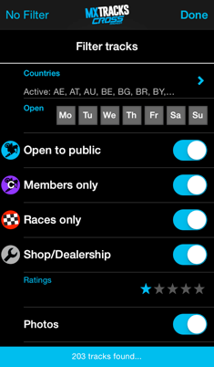 What good is an ever growing list of information if you cannot find what you're looking for!? Filter the tracks you can ride on the next thursday and saturday, see tracks open for race only, list just the tracks in your home country or maybe just in Italy if you plan to go for a motocross vacation.