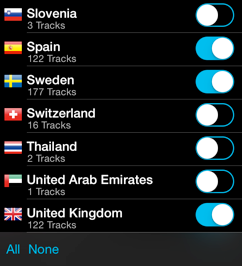 Display the track alphabetically by name or by distance form you current location. You can bookmark any track to your personal favorites list.